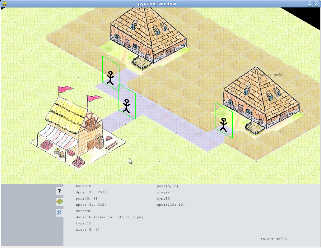 Sehr vieles hat sich geändert seit der letzten Version. Nun gibt es einen 'Boten', der Waren von der Farm zum Kontor bringt. Dazu musste ich einige neue Variabeln und Funktionen definiren.